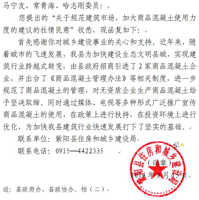 政协十一届三次会议第15号社情民意复函