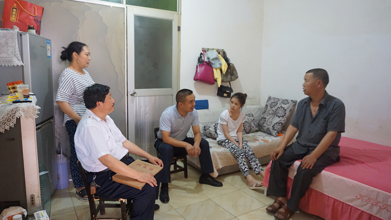 在罗世明家中,得知其女儿女婿2008年双双遭遇车祸离世,老两口在社区当清洁工供两个孙子上学,机关干部鼓励安慰老人一定要坚定生活信心,克服暂时的困难,让两个孙子安心上学,健康成长,将来他们一定会以优异的成绩回报家庭和社会。