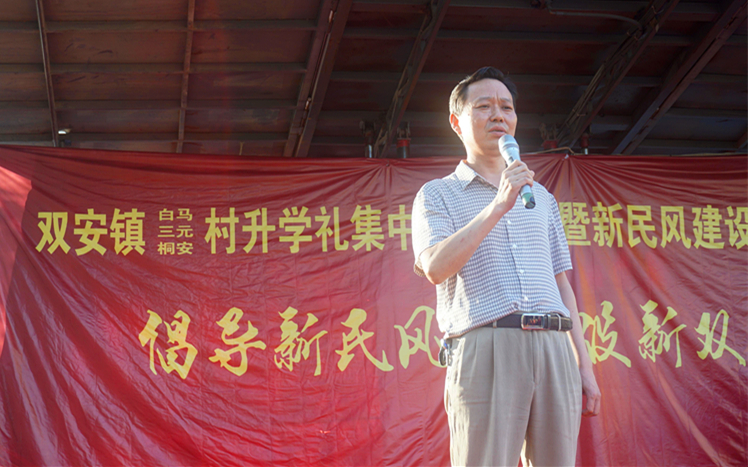 8月8日,县政协副主席黄振宙到双安镇检查指导新民风建设并出席白马、三元、桐安三村举办的大学新生集体升学庆典仪式。