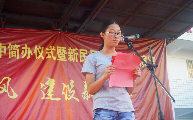 仪式上,黄振宙对今年考入大学的17名准大学生表示热烈的祝贺并提出殷切希望,对“诚、孝、俭、勤、和”新民风做了深入浅出的阐述。
