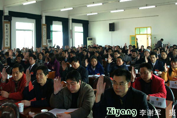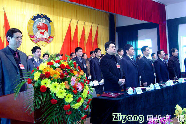 在庄严的国歌声中肃立,肩负起全县人民的重托。