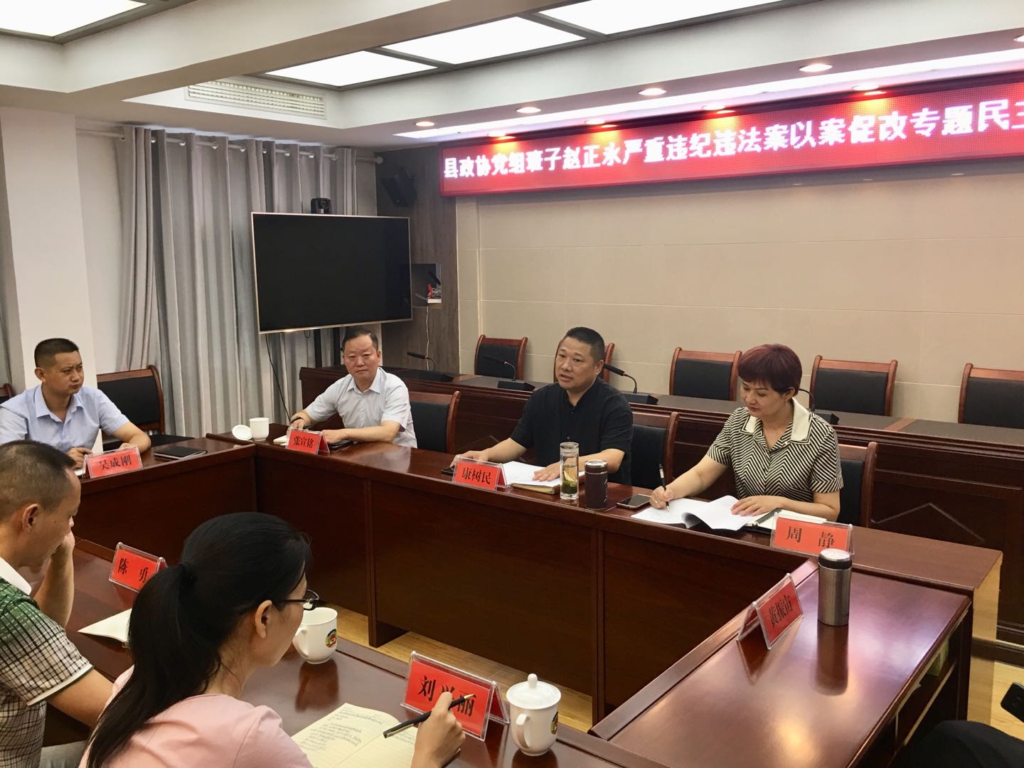 | 8月21日,县政协党组班子召开赵正永严重违纪违法案以案促改专题民主生活会暨省委脱贫攻坚专项巡视“回头看”整改专题民主生活会。县政协党组书记、主席康树民主持会议并讲话。副主席黄振宙,县政协秘书长吴成刚,各委室主任列席会议。