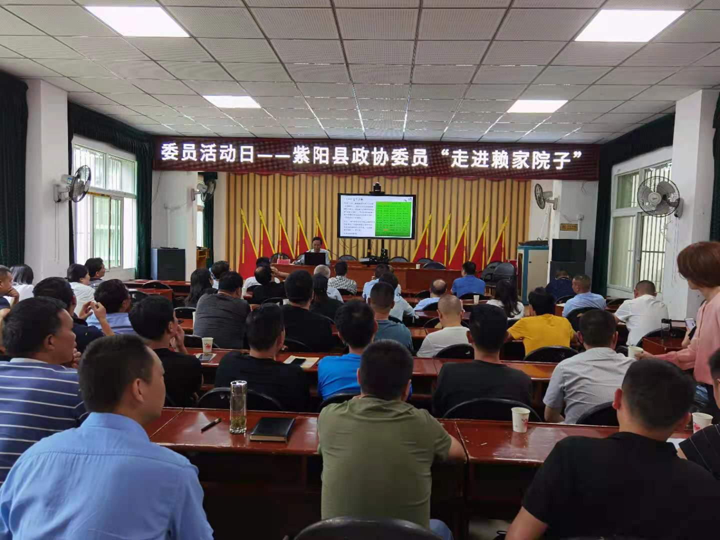 | 9月15日,紫阳县政协学习文卫委员会在东木镇举办“委员活动日”大讲堂第六期专题文化讲座。县政协文化艺术界、教育界委员,东木镇部分干部和教师,赖氏家族代表共计60余人参加了讲座。县政协副主席黄振宙以《落落风云会 迟迟雨雪途》为题,对紫阳最后一名进士赖清键生平进行了专题文化讲座。