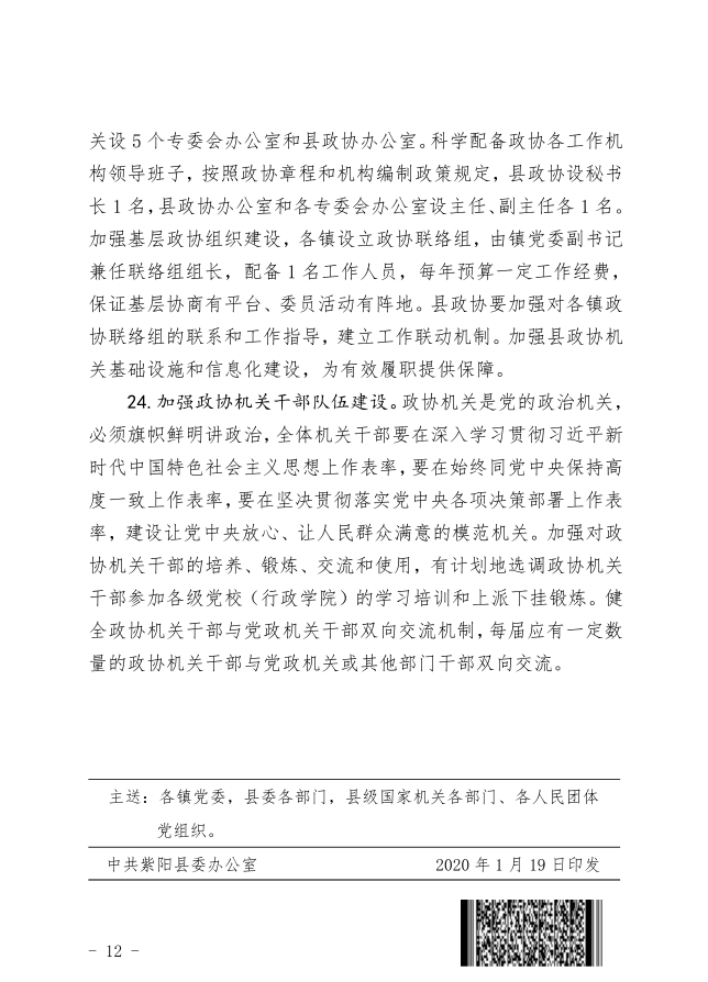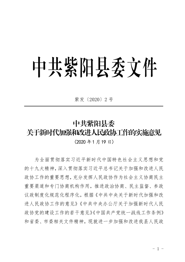 中共紫阳县委关于新时代加强和改进人民政协工作的实施意见