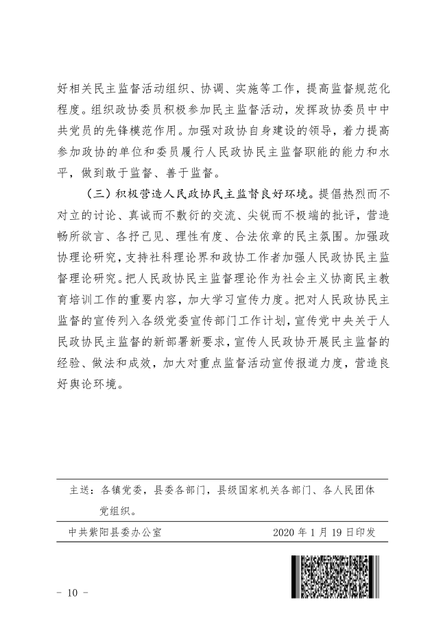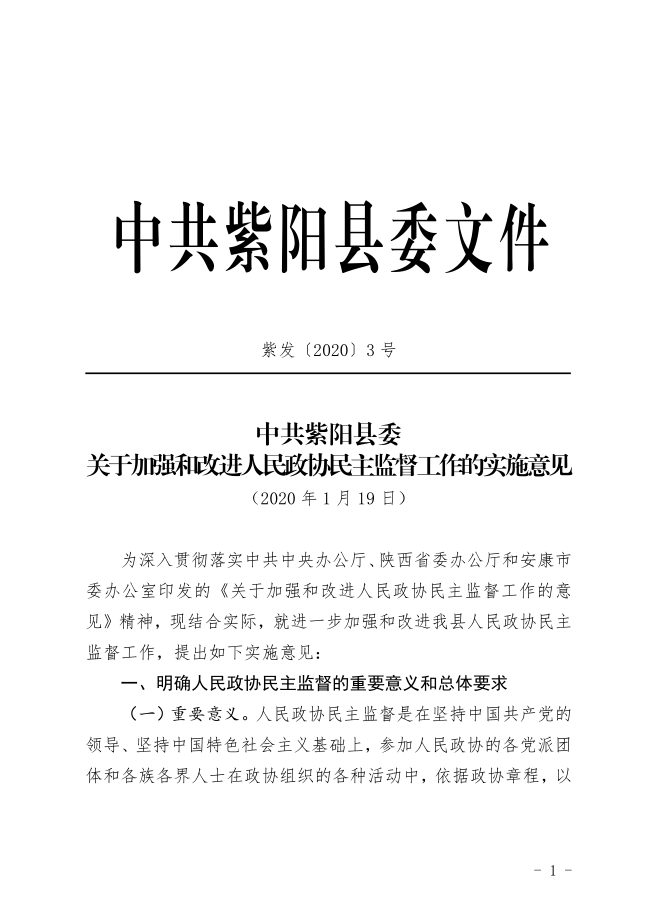 中共紫阳县委关于加强和改进人民政协民主监督工作的实施意见