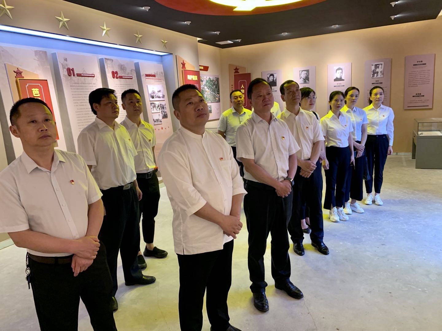 在庄严肃穆的芭蕉亭纪念碑前,全体党员干部驻足凝视,向革命先辈表达敬仰和追思。在鲜红的党旗面前,全体党员干部重温了入党誓词。在史料陈列室,聆听了革命先烈事迹的讲解,追思革命前辈足迹。在初心感悟室,观看了《芭蕉口红色纪事》,感悟革命先辈崇高感人的事迹。