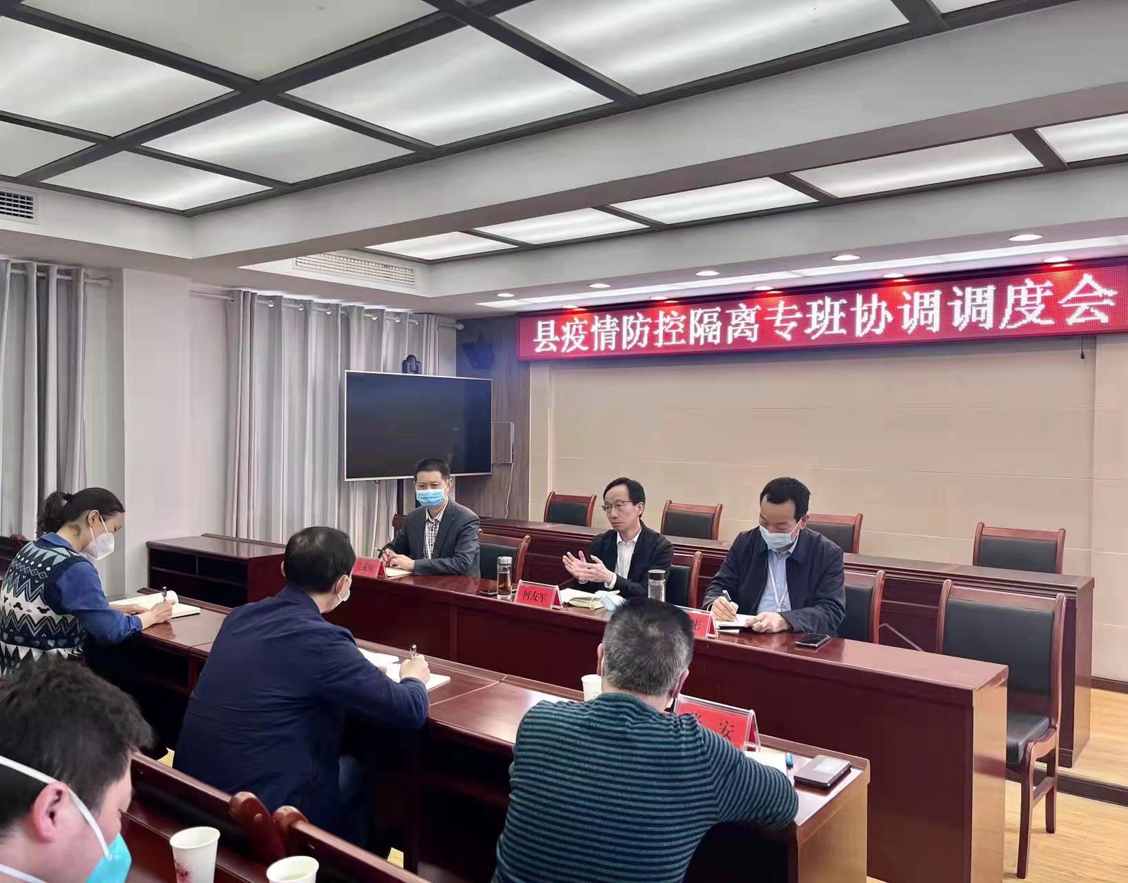 4月8日,县政协主席何友军主持召开疫情防控隔离专班协调调度会。