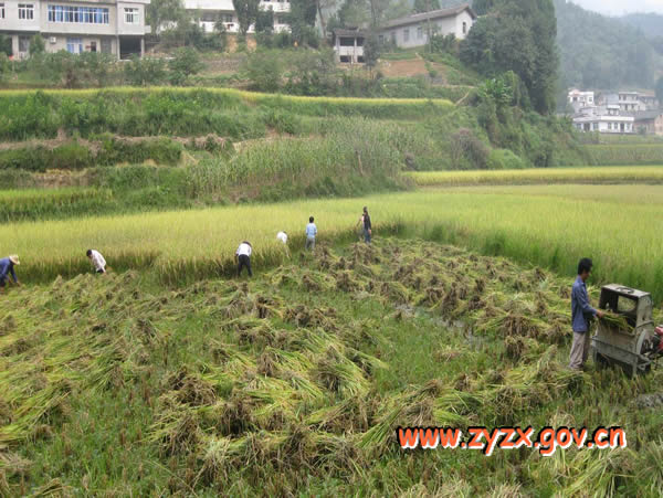 金秋时节,稻谷飘香,正是收获的季节。由于受今年多次强降暴雨和虫害等自然条件影响,使部分农作物受损,但全镇的水稻产量仍喜获丰收。 走进汉王镇西河村,无论是在水稻田里还是打谷场上随处可见忙于收割打谷的农民,看着金灿灿的水稻颗粒归仓,忙碌一年的人们纷纷露出幸福的笑脸,个个脸上都洋溢着丰收的喜悦,在该村金灿灿的稻田里,随处可见农民朋友挥汗如雨、奋力收割的情景,他们采取小中型收割机械和人工收割的方式收割成熟的稻谷,全村上下打响了水稻收割“攻坚战”。西河村地理环境恶劣,今年频繁的自然灾害,给这个原本落后的小村庄带来了沉重的打击,将部分村民的稻田冲毁,洪灾过后,在镇村两级干部的大力帮扶下,村民们不等不靠,积极开展了生产自救,对受损农作物进行了扶正,补苗,加大病虫防治,将损失降到了最低。据初步计算,该村的水稻亩产量将达到了600公斤左右,较上年有明显增长。 目前,全镇4875亩水稻正在抢收。据介绍,今年水稻产量是最高的,收成最好的,总产量将达到2925000公斤。