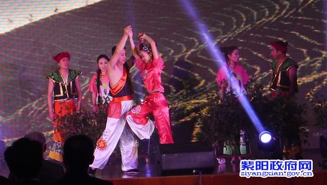 紫阳歌舞表演《郎在对门唱山歌》一开场就把演出活动推向高潮,演员们饱含深情,全心投入,演绎出紫阳民歌清新宁静的风格,展示了陕南茶乡的独特魅力,赢得了观众的热烈掌声。《汉江号子》以其粗犷浑厚、铿锵有力的气势,传神地表现了紫阳人民不畏艰险、积极向上的奋斗精神,令在场观众备受感染。