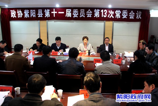 | 3月20日,紫阳县政协第十一届委员会召开第十三次常委会议。县政协主席王春丽主持会议并讲话。县政协副主席周学福、黄振宙、张立尧出席会议。