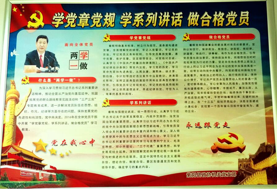 营造学习教育氛围。在机关楼道、会议室等区域,制作悬挂了内容详尽、图文并茂的宣传栏,营造浓厚的学习教育氛围。开辟“两学一做”学习教育园地,集中展示政协领导及全体党员干部撰写的心得体会,并通过机关qq群互动交流学习效果,提出意见和建议。在理论学习的基础上,组织全体党员干部集体观看了党风廉政建设警示教育片,并就典型事例展开了讨论。