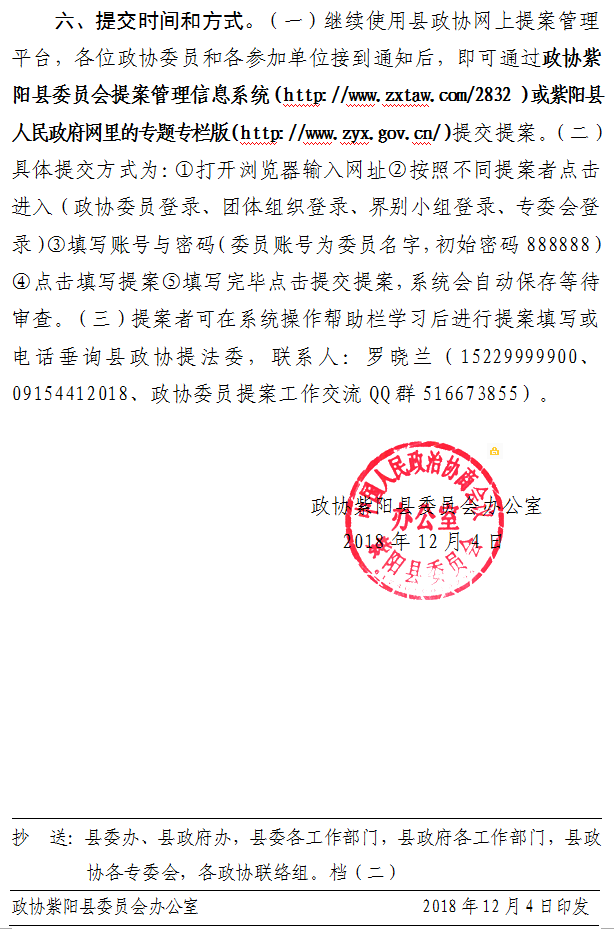 县政协办公室关于征集政协第十二届紫阳县委员会第四次会议提案的通知